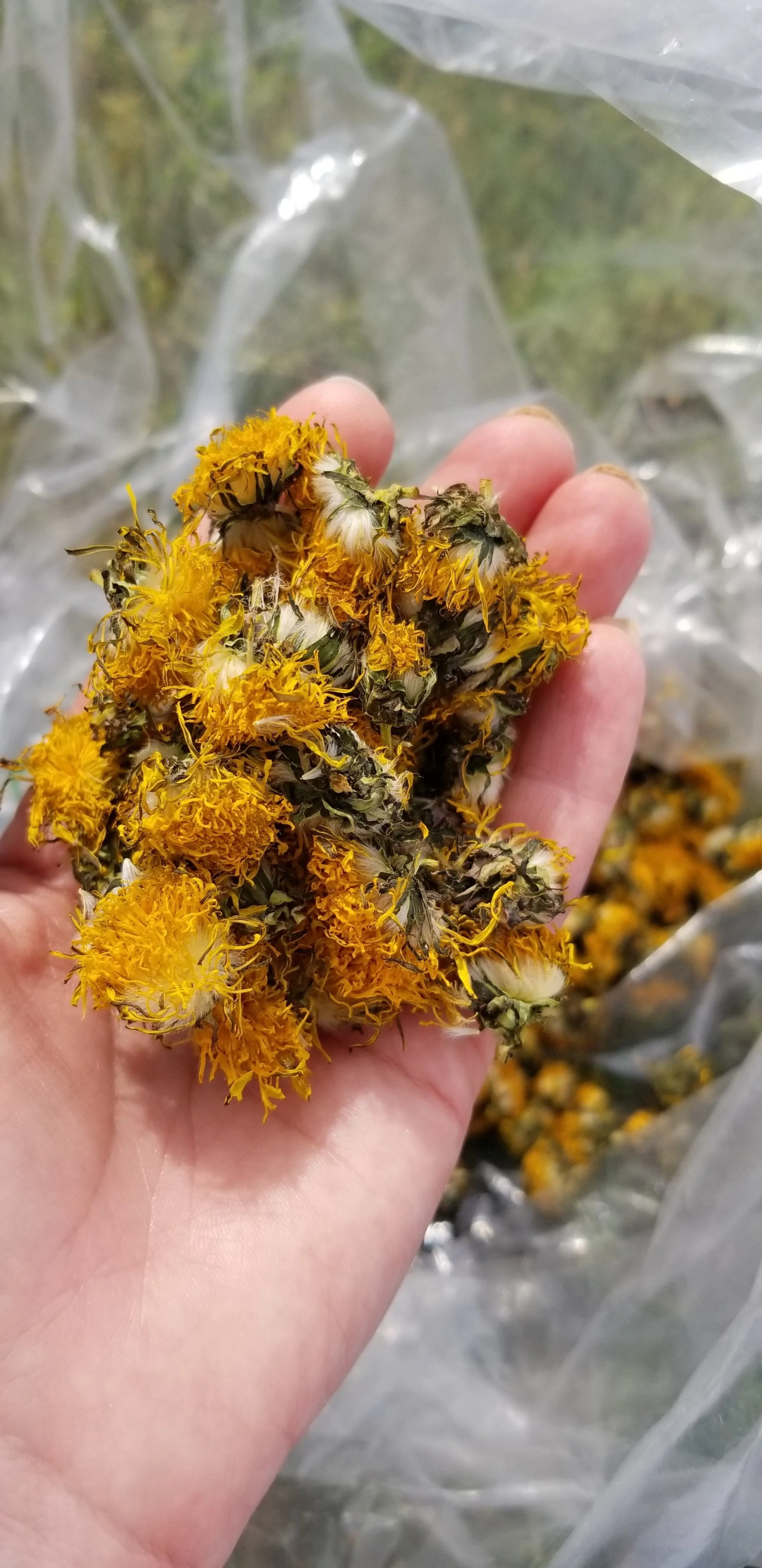 dried dandelions for biodynamic preparations, photo by Kelly Magyarics